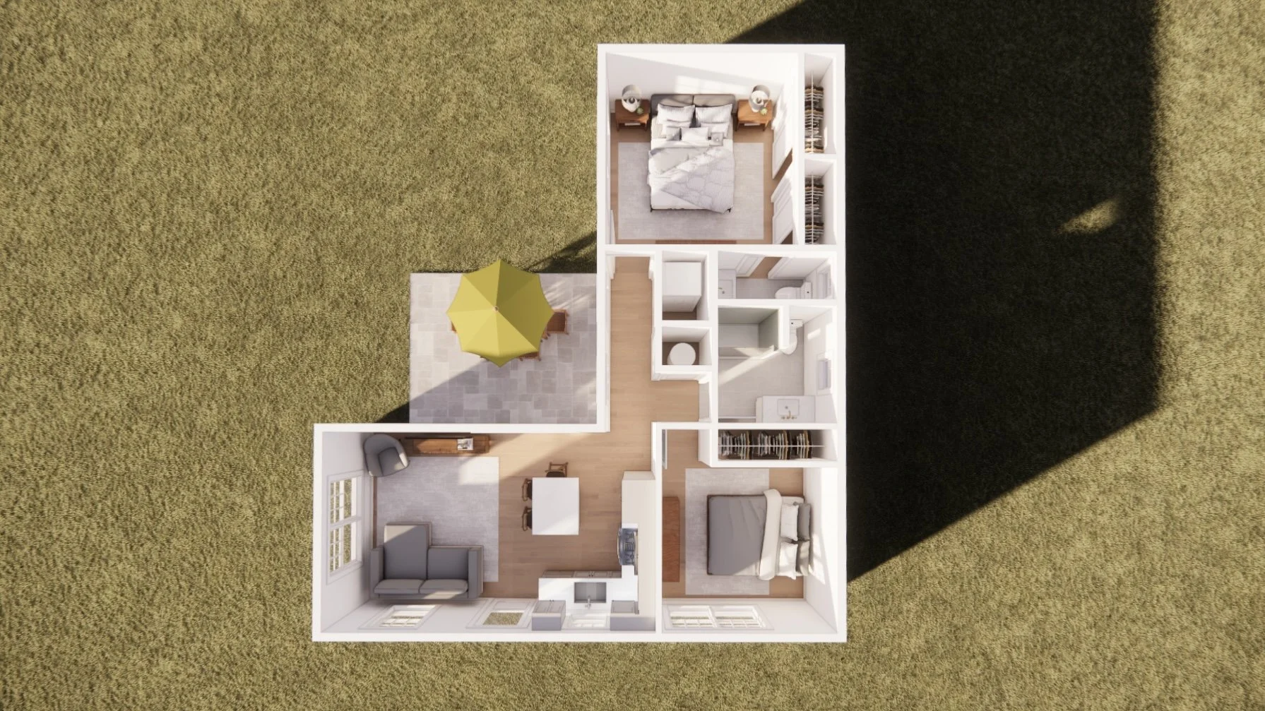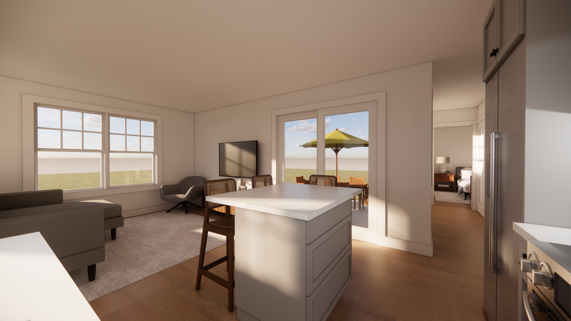 The open floor plan creates a bright and functional main living space, while a separate bedroom and bathroom wing offers privacy and versatility. A sun-filled patio extends the home outdoors, enhancing livability and usable square footage. Designed with construction in mind, this ADU project delivers a clear, buildable solution that aligns with local zoning requirements and supports long-term property value.